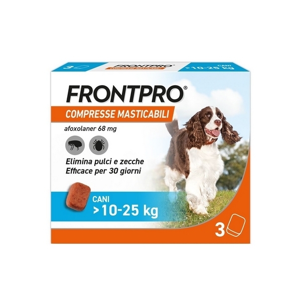 L’antiparassitario Frontline Frontpro in compresse masticabili è un prodotto per cani di taglia media (10-25 kg) che fornisce una protezione efficace e duratura contro pulci e zecche.