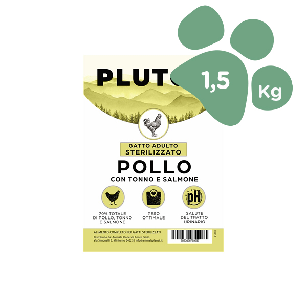 PLUTON per Gatti Adulti Sterilizzati – Pollo con Tonno e Salmone 1,5 kg