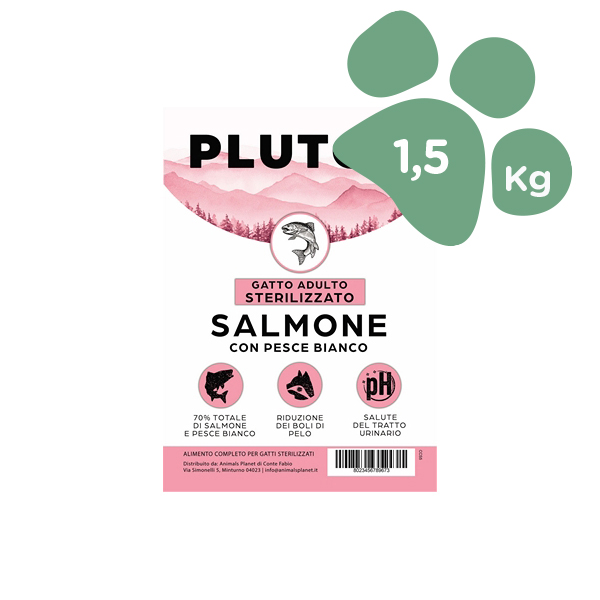 PLUTON per Gatti Adulti Sterilizzati – Salmone con Pesce Bianco 1,5 kg