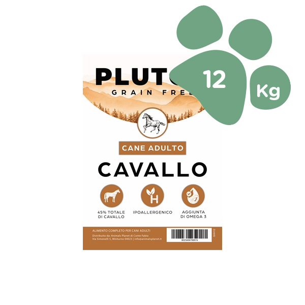 Pluton Cane Cavallo con Patate Dolci e Melograno nel formato da 12 kg è un alimento secco completo formulato per l’alimentazione quotidiana del cane, ideale anche per soggetti con sensibilità verso le fonti proteiche più comuni.