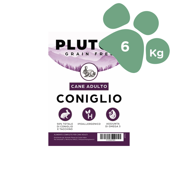 Alimento per cani Pluton con gusto di coniglio e patate dolci 6 kg
